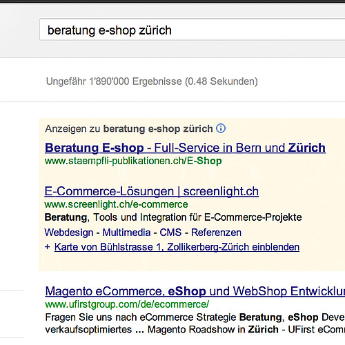 Wenn Sie mit Google nach «PIM Software», «Website optimieren» oder «Beratung E-Shop Zürich» suchen, finden Sie womöglich ganz oben einen Treffer mit Stämpfli Webadresse. Bei diesen Texten auf gelbem (...)