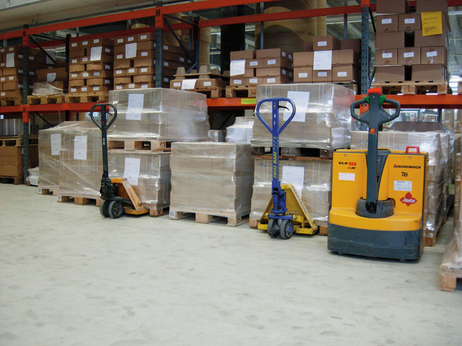 Der Chauffeur versucht, die geladene Ware in den 2. Stock zu schleppen. Doch dies bleibt wegen eines zu kleinen Liftes, zu grosser Paletten und zu enger Platzverhältnisse ein unmögliches Unterfangen.