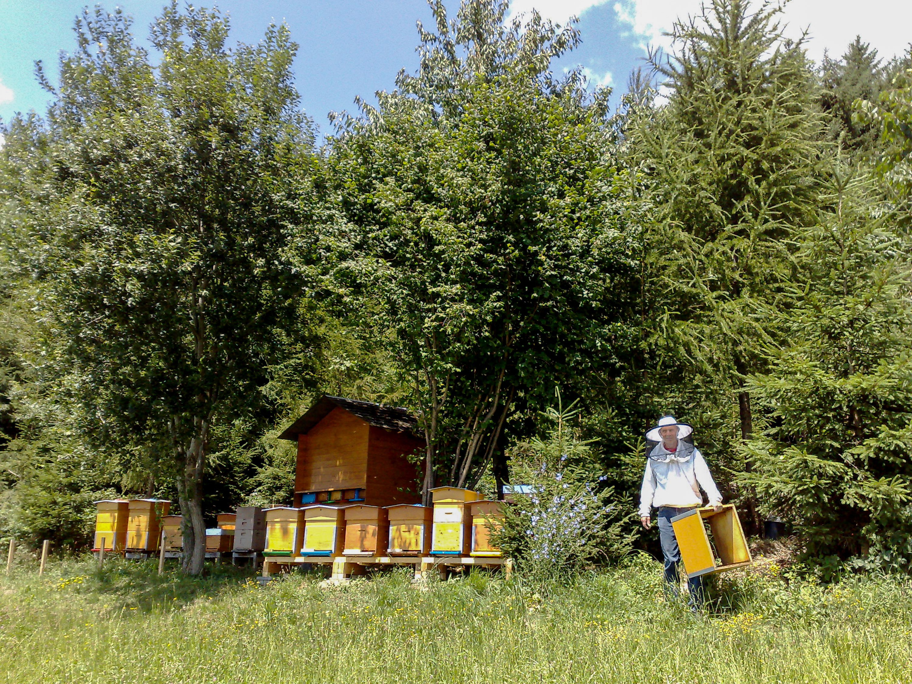 Mein Mann und ich erlebten die Imkerei schon als Kinder. Später halfen unsere Töchter dem Grossvater im Bienenhaus, und eine von ihnen begann, in unserer Region zu imkern. Mein Mann half ihr, wenn starke Arme gefragt waren, ich fing ihre Schwärme ein, wenn sie an der Arbeit war. Mit Kindern und Bauernhaushalt wurde ihr die Zeit knapp. Ab 2008 besuchten mein Mann und ich den Imkerkurs, übernahmen ihre Imkerei und erweiterten sie. Jetzt betreuen wir mit Freude unsere 25 bis 30 Völker auf vier Bienenständen mit dem goldenen Siegel.