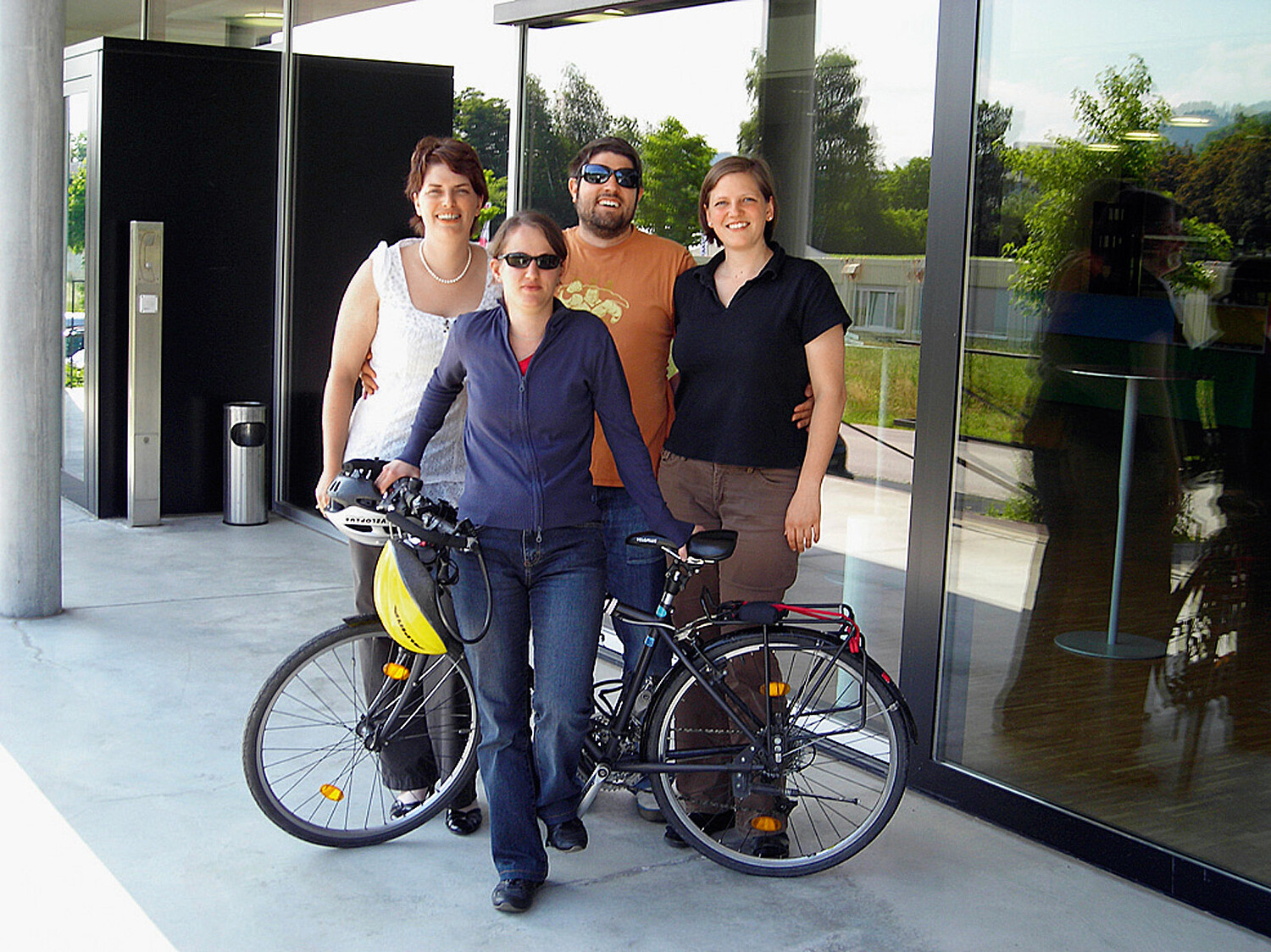 Beim Mittagessen fand sich unser Viererteam zusammen: Claude Beauge vom Corporate Publishing, Franziska Forster, Florence Alvarez und ich vom Korrektorat. Florence würde die Strecke vom Bahnhof Ostermundigen an die Wölflistrasse zu Fuss zurücklegen, wir anderen wollten mit dem Velo kommen. Der Teamname sollte natürlich etwas Besonderes sein. Auch nach mehreren gemeinsamen Mittagessen war aber nur Unsinn zustande gekommen. Also nannten wir uns «Uns.In», in Anlehnung an die Firmennamen mit ganz besonders origineller Schreibweise, mit denen wir im Korrektorat zu tun haben.