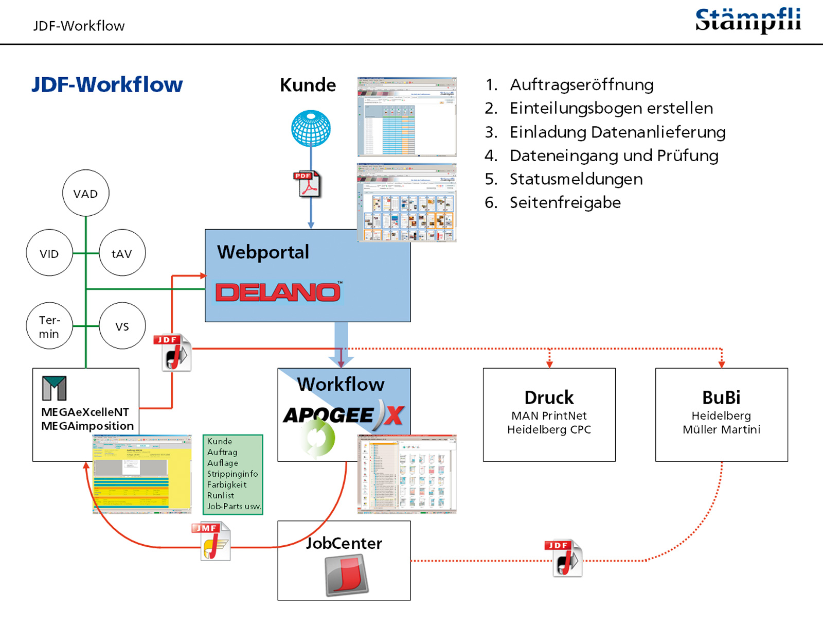 Das Projektmanagementsystem Delano wurde von Agfa Graphics entwickelt. Stämpfli führte diesen integrierten Online-Workflow Mitte 2006 als erstes Unternehmen in der Schweiz ein.