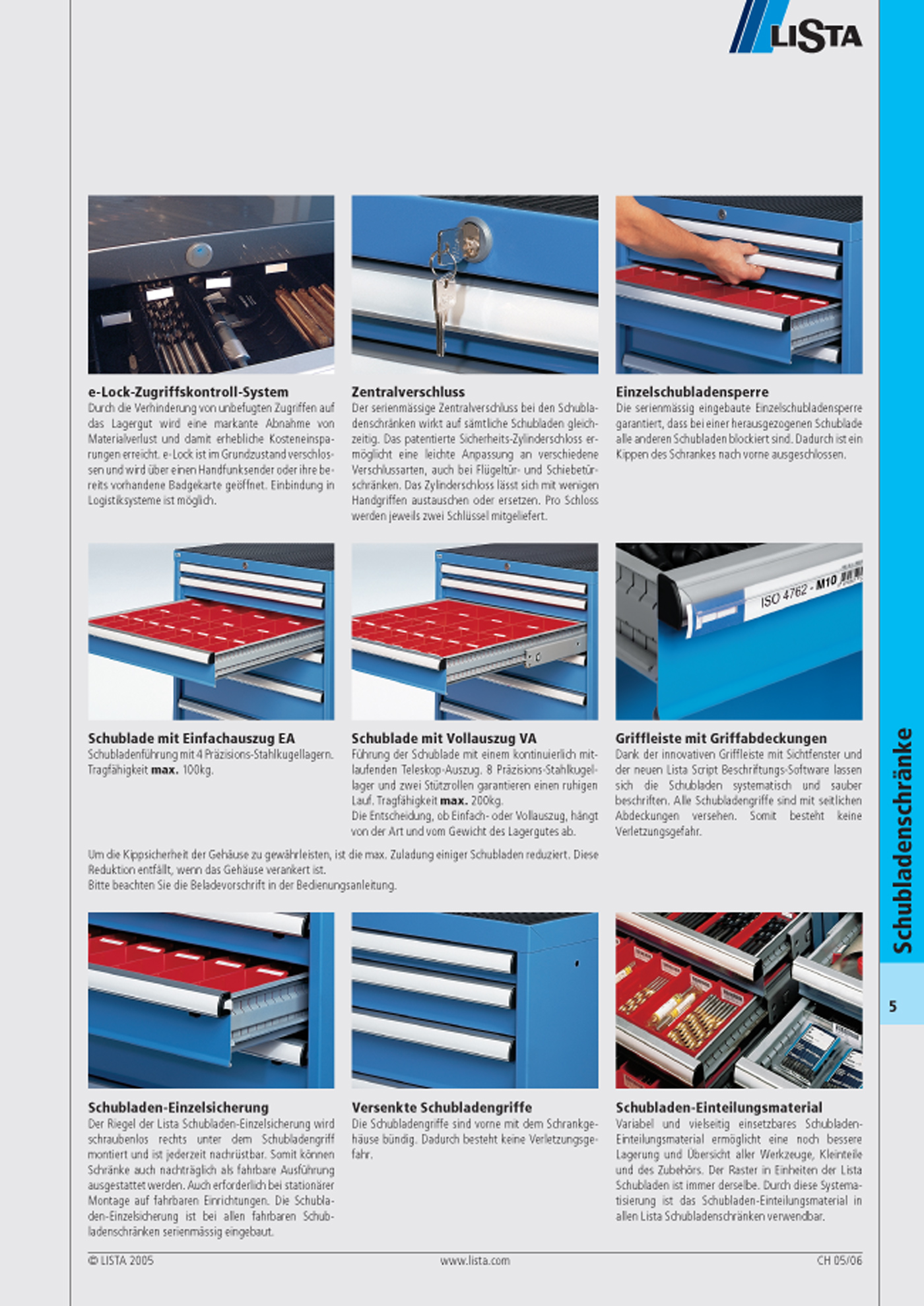 Die ersten Reaktionen von Vertrieb und Markt bezüglich Handhabung und Kundenfreundlichkeit unseres neuen Kataloges «Betriebs- und Lagereinrichtungen» sind vorwiegend positiv. Weitere Kataloge für andere Länder in den entsprechenden Sprachen und Währungen werden vorbereitet. Als zusätzlicher Nutzen unserer neuen Publikationslösung können nun alle Kataloge als PDF auf unserer Website www.lista.com zum Download bereitgestellt werden.