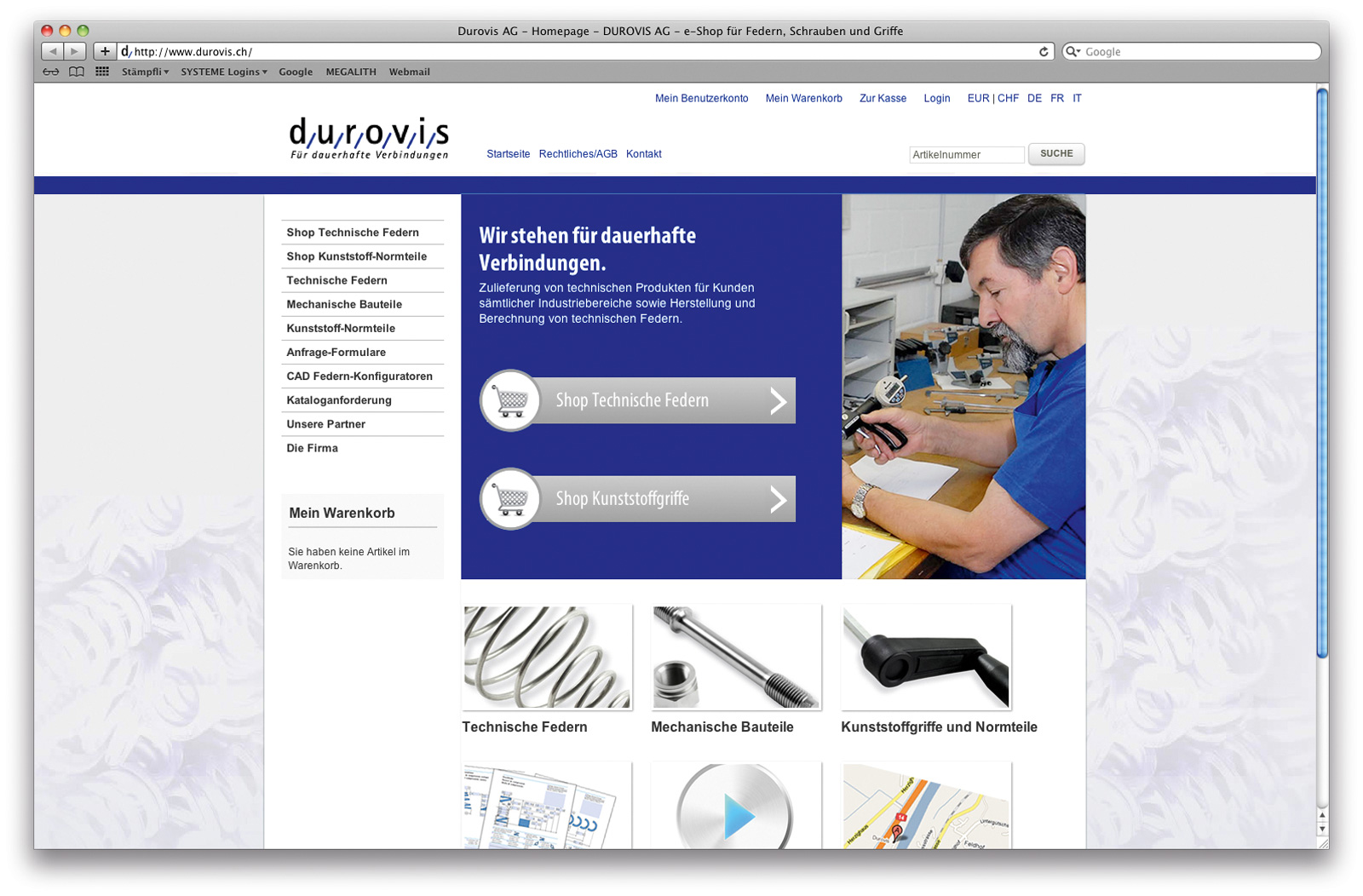 Dass höchste Qualität unerlässlich ist, weiss man ganz besonders bei der Durovis AG. Das in der Nähe von Luzern ansässige Unternehmen ist spezialisiert auf die Zulieferung von kundenspezifisch bearbeiteten Bauteilen sowie die Herstellung und Berechnung technischer Federn. Zentral für den Vertrieb des umfangreichen Sortiments ist die unternehmenseigene Webplattform, bestehend aus Website und integriertem E-Shop. Ergänzend liegen die Produktinformationen in einem gedruckten Katalog vor.