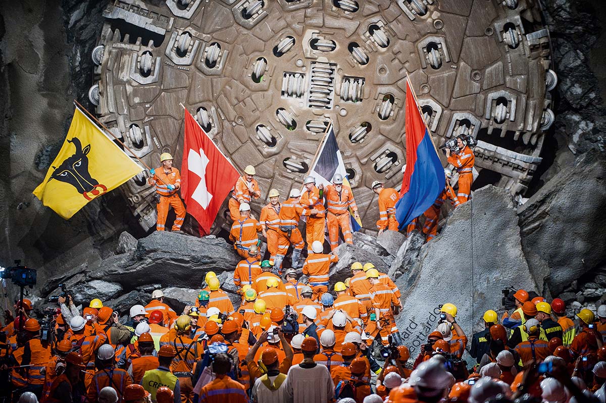 Der Hauptdurchschlag vom 15. Oktober 2010 war sicher der emotionalste Moment. Dann gab es auch die bautechnischen Highlights wie den Einbau des deformierbaren Stahls im Tavetscher Zwischenmassiv. Sehr erfreulich waren das problemlose Durchfahren der gefürchteten Pioramulde und der 24-Stunden-Rekord der Tunnelbohrmaschine beim fliegenden Vortrieb von 56 Metern im Abschnitt Erstfeld. Ein anderes Highlight war der Besuch des Gesamtbundesrates im September 2012. Vom Kanton Uri aus fuhren die Bundesräte mit einem Diesel-zug durch den Gotthard-Basistunnel bis zur Multifunktionsstelle Sedrun. Anschliessend ging es mit dem Lift den Schacht hinauf nach Sedrun. Hier wurden sie von der Dorfbevölkerung mit einem kleinen Volksfest begrüsst. Grossartiger Schlusspunkt war das Fest der Projektbeteiligten am 2. Juni 2016 im Rahmen der offiziellen Eröffnungsfeierlichkeiten. Die AlpTransit Gotthard AG dankte damit rund 2500 Projektbeteiligten von über 300 Firmen für ihr grosses Engagement beim Bau des Jahrhundertbauwerks.