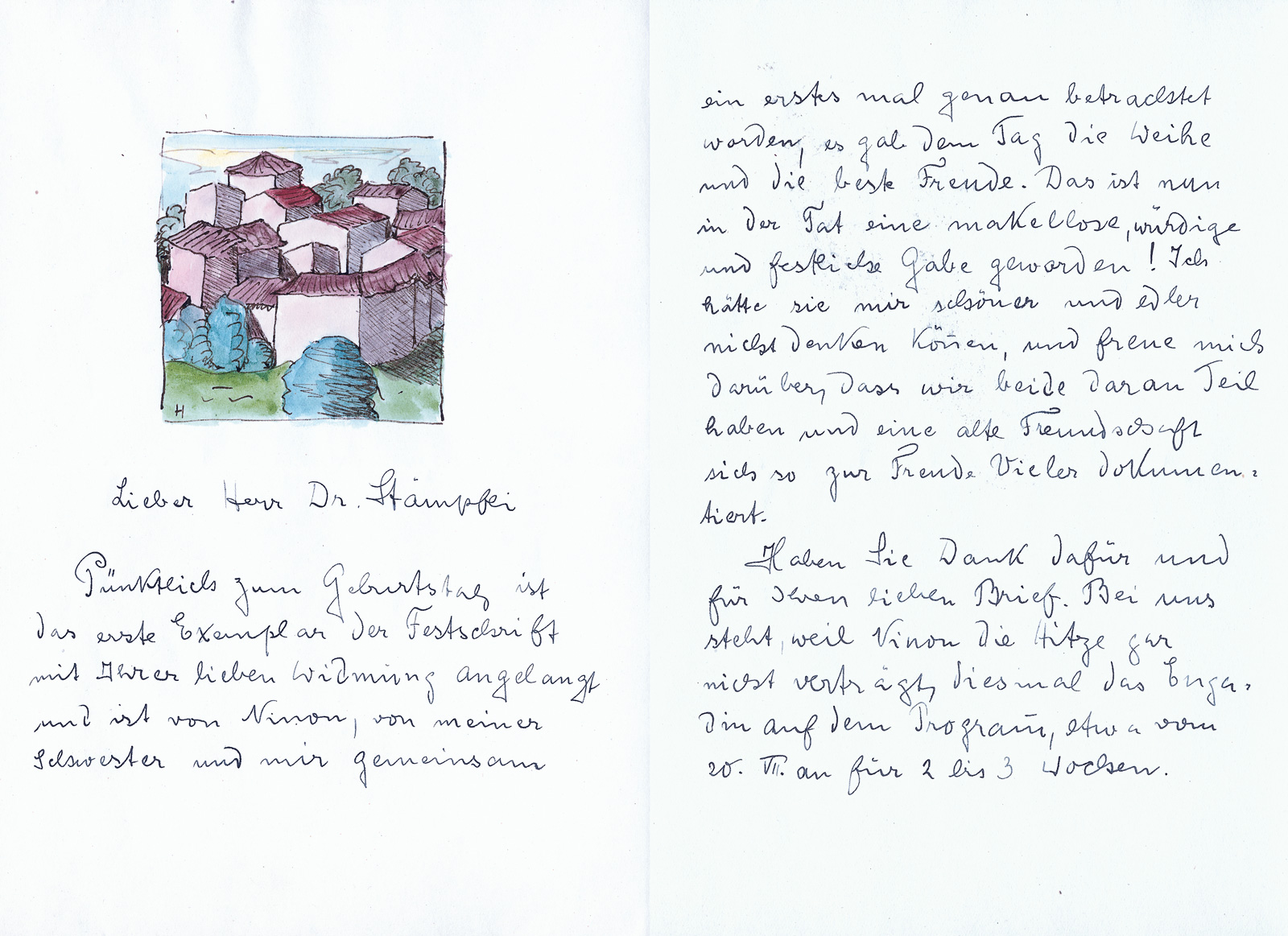 Hesse, der ja auch malte, bat Wilhelm Stämpfli immer wieder um Zeichen- und Malpapier, Pinsel, Bleistifte, Broschüren, gedruckte Antwortkarten, Werbeprospekte für seine illustrierten «Piktor»- und Gedichtmanuskripte, Kohlepapier, Briefbogen, Couverts usw. Dabei entwickelte er geradezu ein Ritual: Er schilderte jeweils unverblümt seine Bedürfnisse, machte detaillierte Angaben zu den benötigten Materialien und zum Termin und stellte dann den Entscheid dem Empfänger anheim – aber in einer Form, die eine Ablehnung fast unmöglich machte –, indem er etwa schrieb: «Falls es Ihnen eine Belästigung ist, dann bitte werfen Sie meinen Brief weg − ich möchte nicht der sein, der Sie plagt.» Als Gegengabe bot Hesse regelmässig eigene Arbeiten, Gedichtabschriften und Aquarelle an, denn: «Tausch ist immer die hübscheste und angenehmste und anständigste Form von Geschäft», wie er im Januar 1937 meinte.