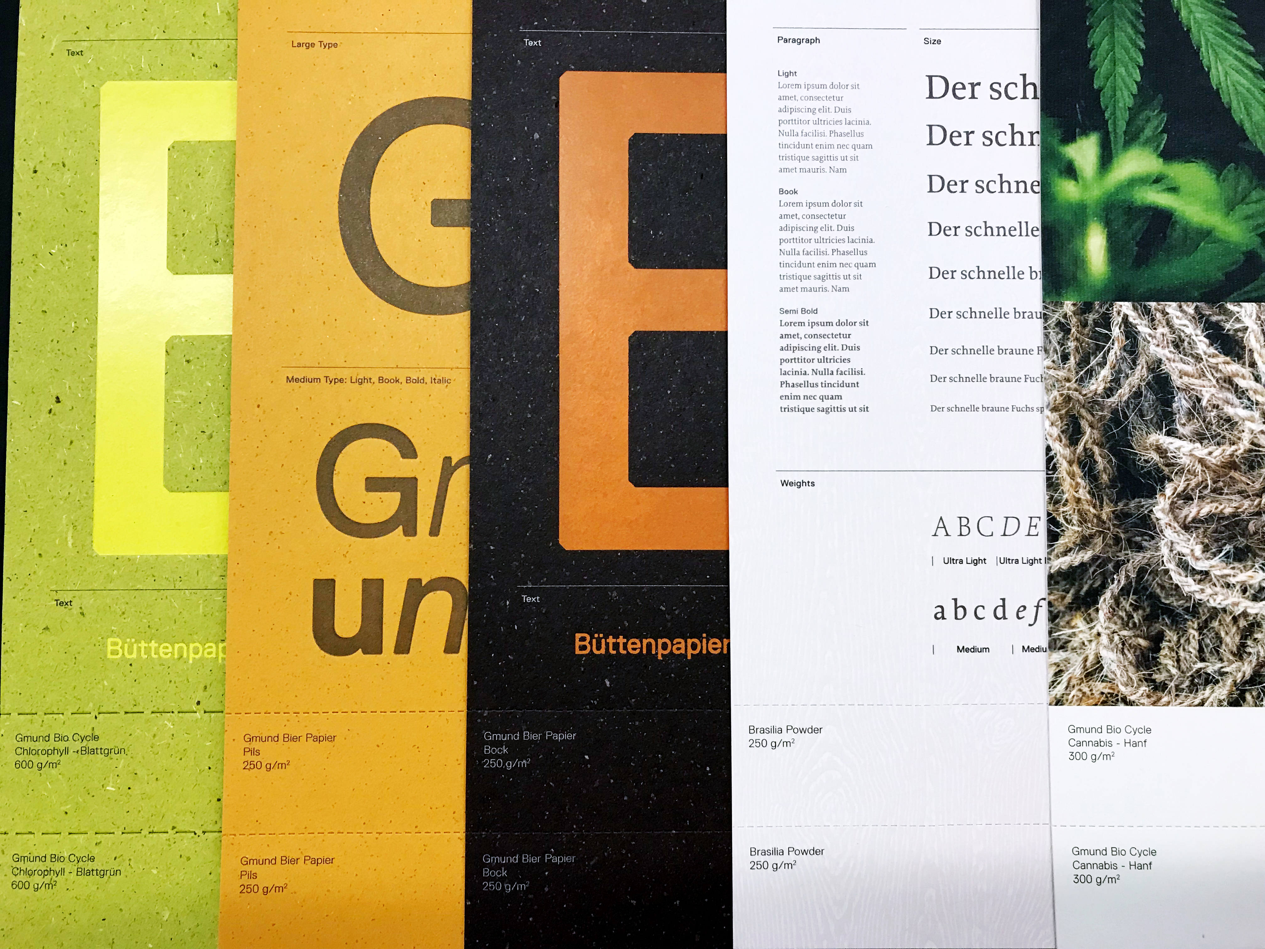 Gmund Papier hat die Linie «Gmund Bio Cycle» entwickelt: Kreativpapiere, die bis zu 50 Prozent aus ressourcenschonenden Fasern wie Weizenstroh, Gras, Baumwolle oder Cannabis hergestellt werden. Sie sind kompostierbar und schaffen so auch wieder Nährstoffe für neue Pflanzen. Der perfekte ökologische Kreislauf.