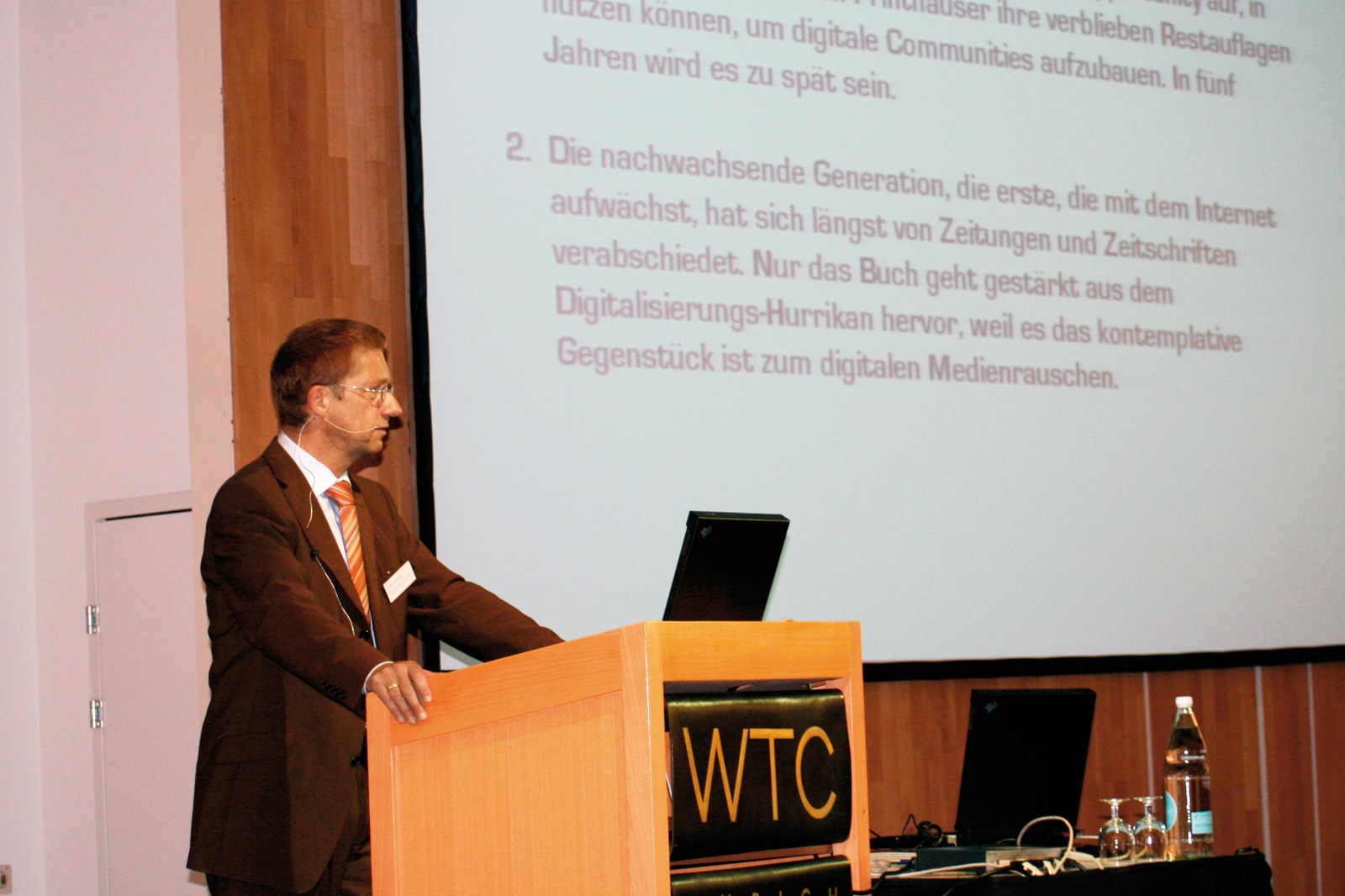 Rund 80 Teilnehmende hörten an der Konferenz spannende Referate wie jenes von Prof. Dr. Mike Friedrichsen zum Thema «Entwicklungen und Herausforderungen in der Welt der Publikationen». Er stellte einige sehr interessante Thesen auf, die in den Pausen für Gesprächsstoff unter den verschiedenen Teilnehmenden und den Stämpfli-Mitarbeitenden sorgten.