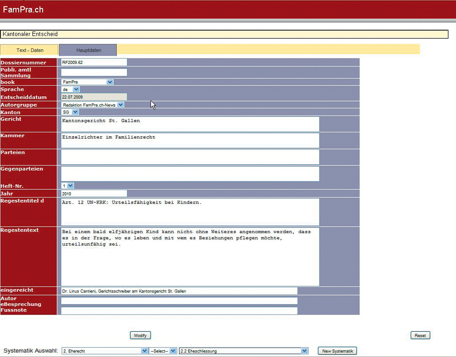redaktion.recht.ch: das Redaktionssystem des Stämpfli Verlags