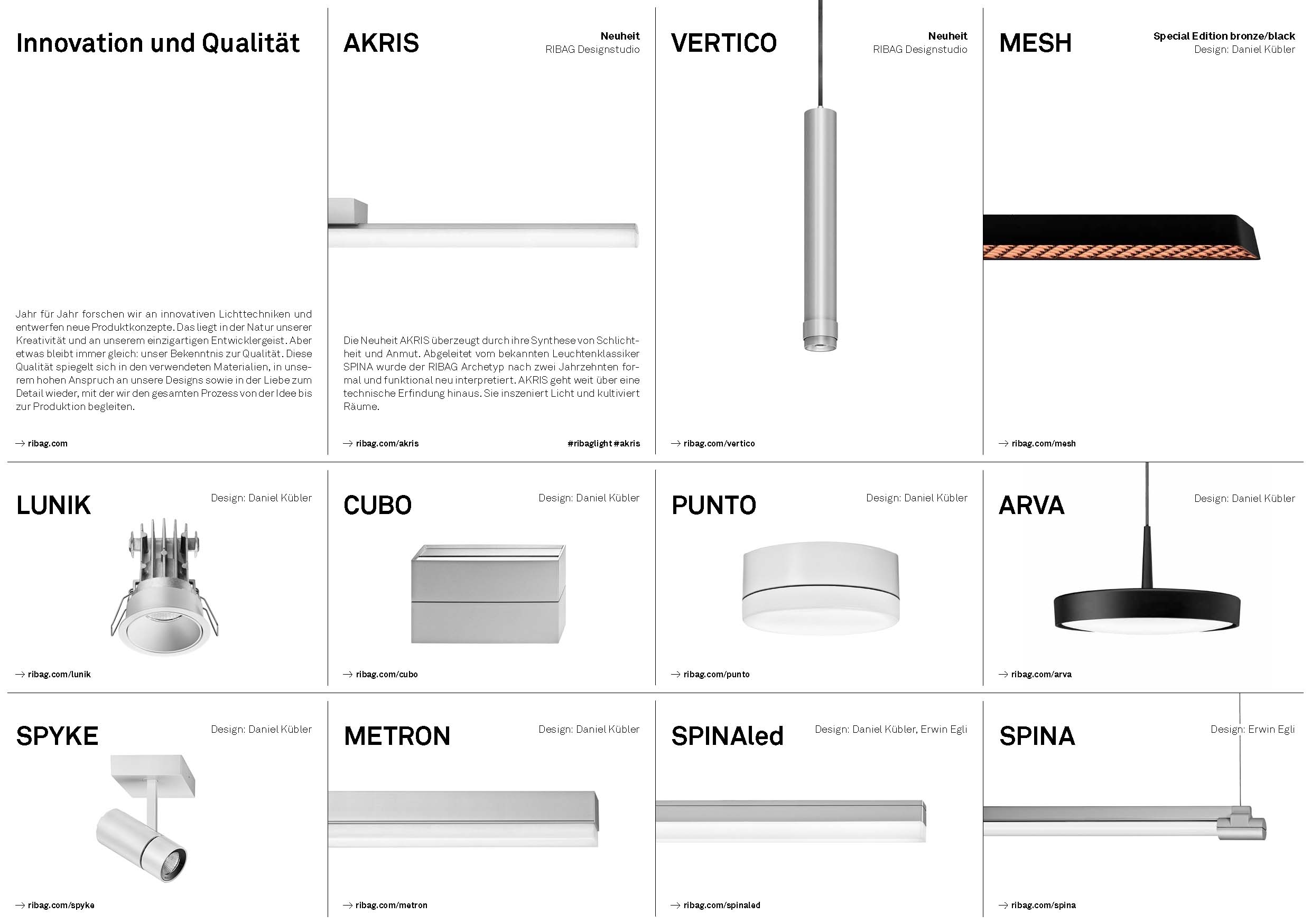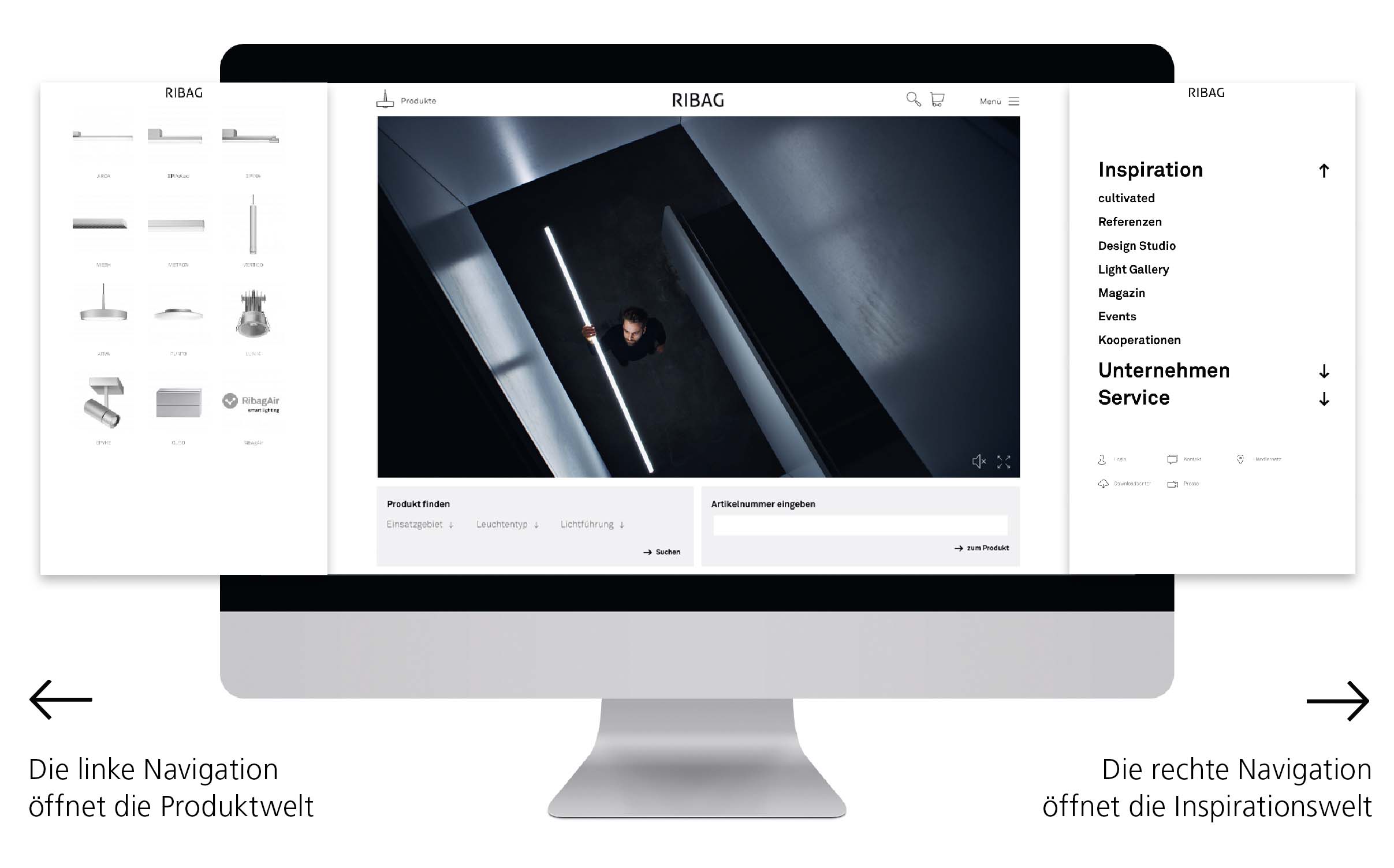 Licht, Raum und Mensch: Die drei Komponenten, die aufeinander wirken und inspirierende Erlebnisse entstehen lassen, sind die Grundbestandteile des Gesamtkonzepts von RIBAG. Dieses und eine umfassende Lösung für die Produktkommunikation konnten von Stämpfli umgesetzt werden.