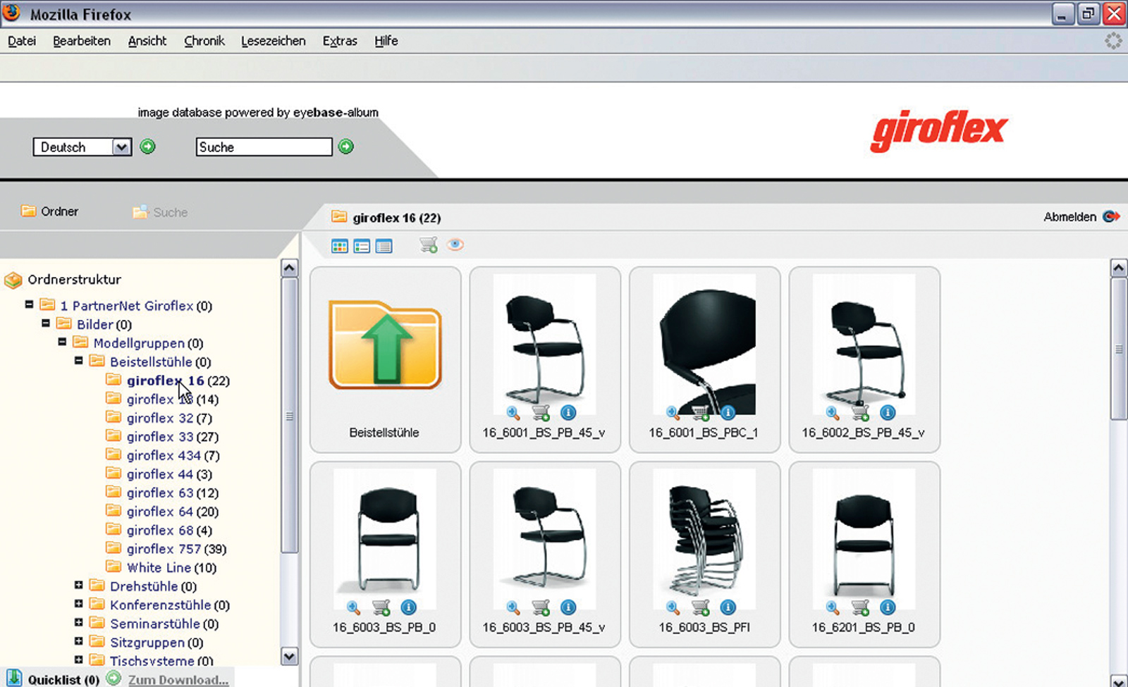 Deshalb setzte Stoll Giroflex auf «PartnerNet»: Es basiert auf der Standardsoftware eyebase-Album der Firma Amediac AG. Stoll Giroflex stellt mit diesem professionellen Media Asset Management System (MAM-System) allen Händlern und Partnern sowie auch den Mitarbeitenden Daten in elektronischer Form zur Verfügung.