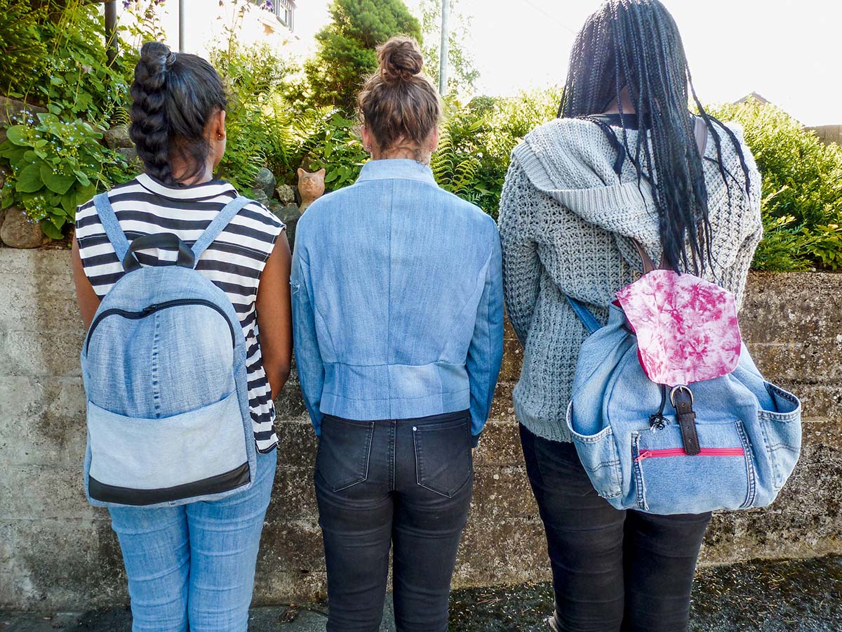Aus alldem ist eine Ausstellung für das ganze Schulzentrum entstanden. Rund um die Weltkarte dokumentierten die Neuntklässler mit Bildern und Mustern die spannende Geschichte der Jeans. Etwa wie Levi Strauss im Jahr 1847 aus dem blauen Stoff aus der Gegend von Nîmes (Denim) eine stabile Hose für die Goldgräber in Amerika entwickelte.Unsere Jeanssammlung inspirierte zudem zu Nähprojekten. Eine Klasse erhielt die Aufgabe, aus den schönen Stücken etwas Neues herzustellen. So entstanden Rucksäcke, Jupes, eine Jacke, Kuscheltiere, eine Kissenrolle und schicke Taschen.Die schadhaften Hosen zerschnitten wir zu Bändern, die dann später auf kleinen Webstühlen zu einem Stoff gewoben wurden. Aus dem Stoff in den verschiedensten Blaunuancen werden jetzt noch Kissenbezüge für Lesekissen in der Schulbibliothek genäht.Während des ganzen Projekts haben die Jugendlichen nicht nur Nähen oder Weben gelernt und viel über wirtschaftliche Zusammenhänge erfahren. Sie haben auch ganz grundsätzliche Kompetenzen geschult, wie theoretisches Wissen anwenden, gesunden Stolz entwickeln, Zeit einteilen, reflektieren, scheitern, planen, experimentieren, Ausdauer üben, wahrnehmen, sorgfältig arbeiten oder fantasieren. Das ist zeitgemässes, vernetztes Lernen im Fach Gestalten. Und übrigens: Die Jeans, die bei Ihnen im Kleiderschrank hängt, hat während ihres Entstehungsprozesses 50000 bis 100000 Kilometer zurückgelegt.