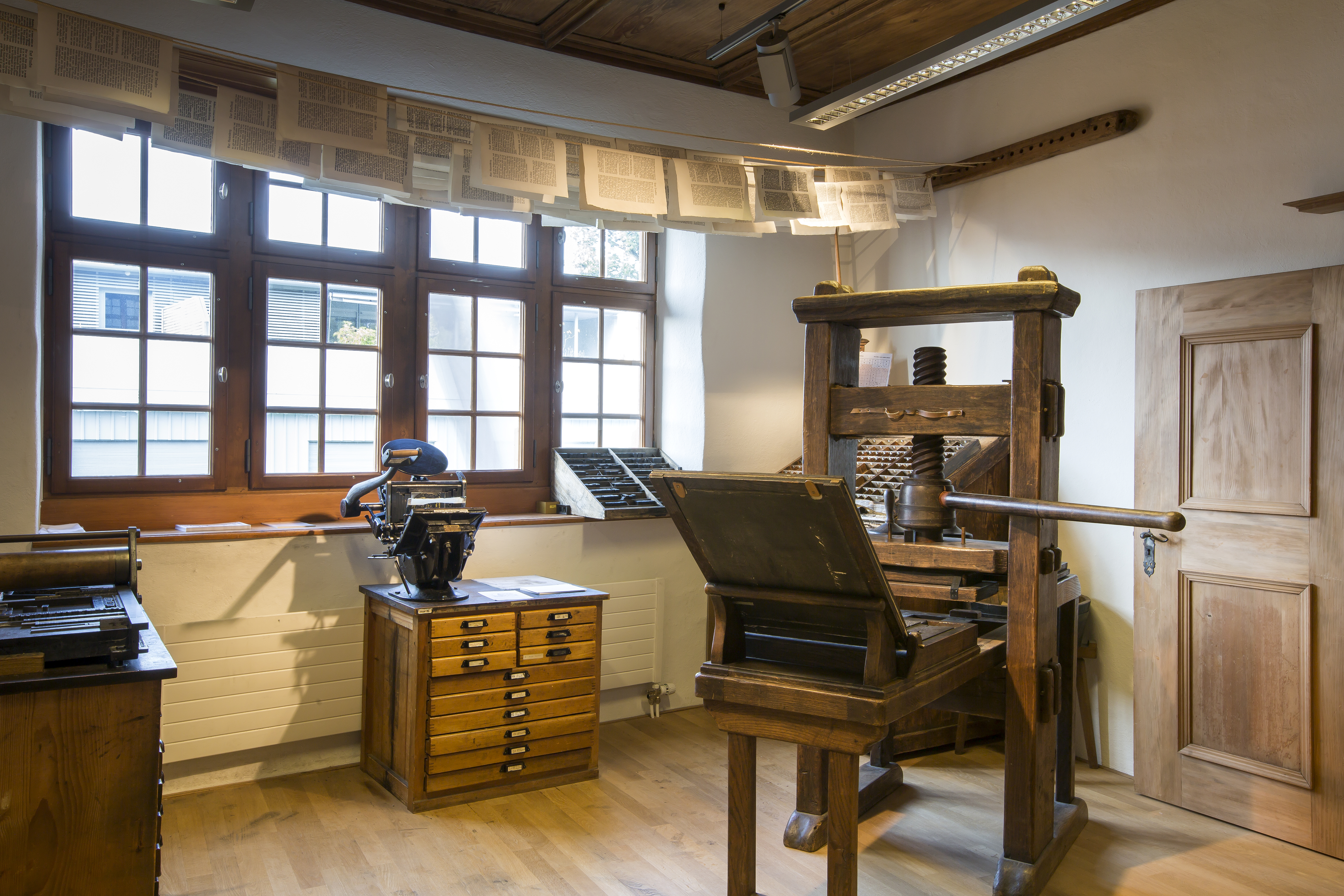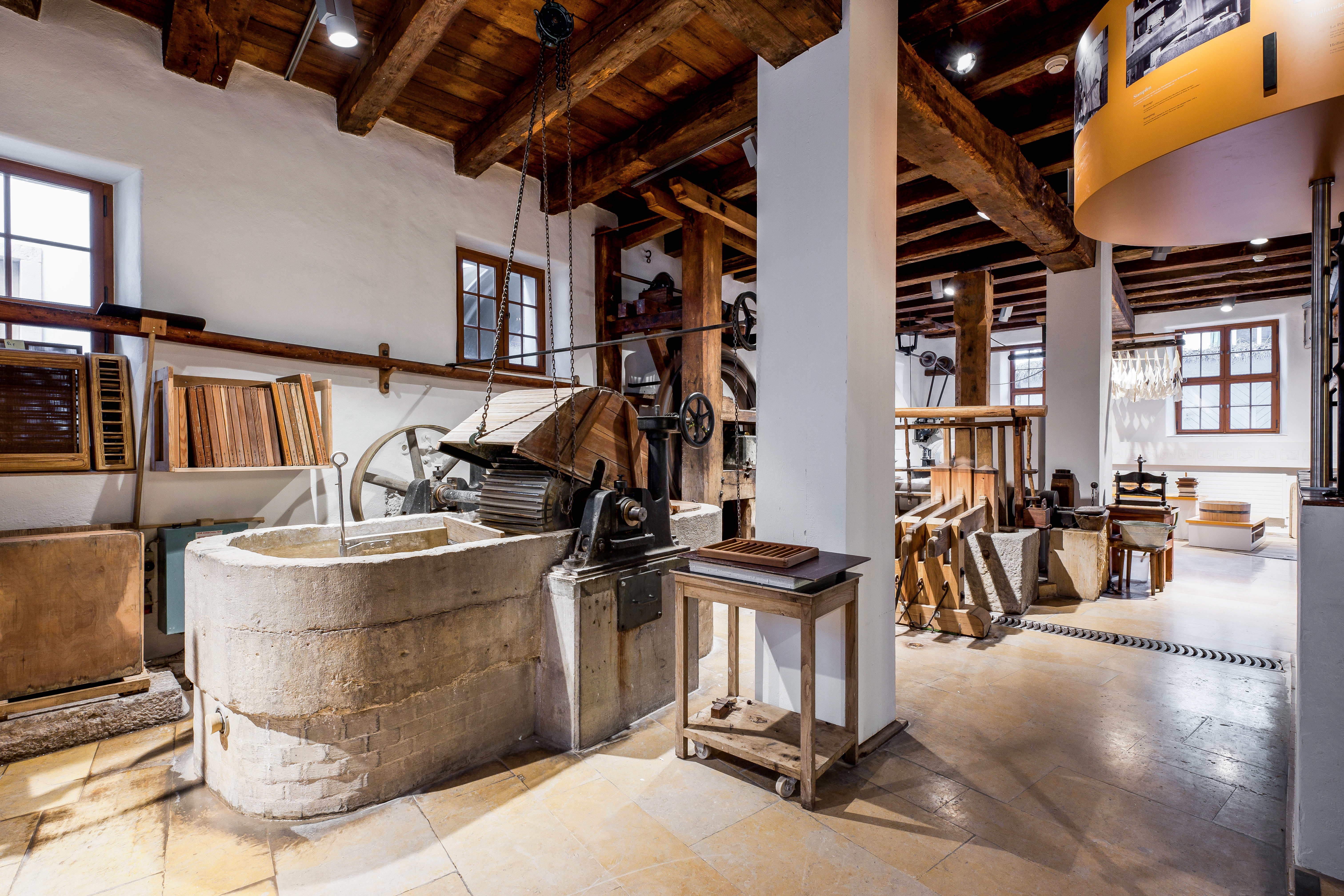 Auf lebendige Weise treffen hier funktionierende Werkstätten und technikgeschichtliche Ausstellungen zu Papier, Schrift und Druck aufeinander. Auf vier Etagen bietet das Museum ein Erlebnis für alle Sinne: Ein Blatt Papier schöpfen, mit Gänsekiel oder Schreibmaschine schreiben, einen Text in Bleilettern setzen und drucken sowie in der Marmorierwerkstatt experimentieren gehört dazu.