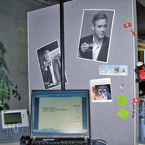Grossraumbüros haben viele Vorteile, es gibt jedoch hie und da, unter anderem beim Telefonieren, störende Momente. Eine Zwischenwand wurde nach einigem Hin und Her zwischen unseren Pulten installiert. (...)