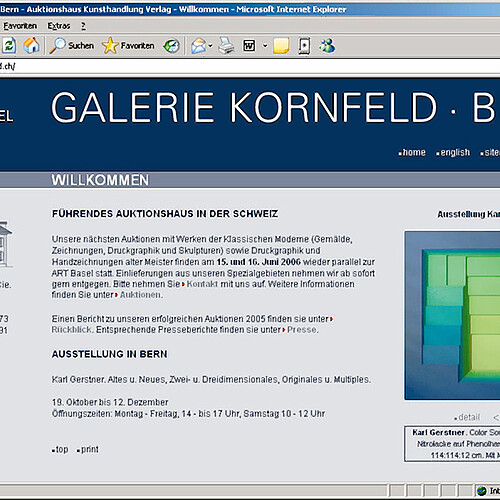 «Galerie Kornfeld: Internet und Online-Katalog»